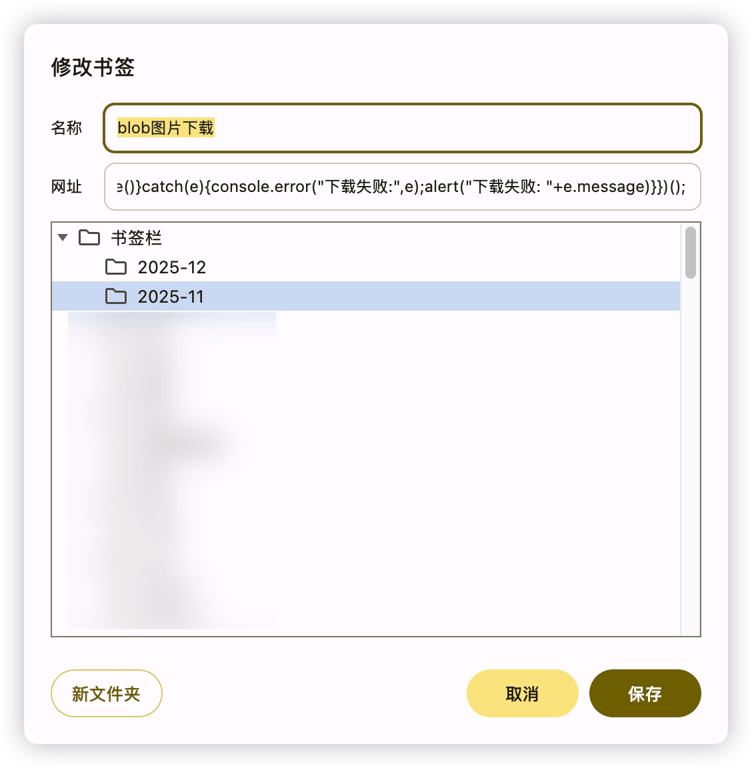 javascript:(async function(){const blobUrl=window.location.href;if(!blobUrl.startsWith("blob:")){alert("此书签仅适用于 blob: 网址。");return}try{const response=await fetch(blobUrl);const imageBlob=await response.blob();const downloadUrl=window.URL.createObjectURL(imageBlob);const a=document.createElement("a");a.style.display="none";a.href=downloadUrl;let extension="jpg";if(imageBlob.type.includes("png")){extension="png"}else if(imageBlob.type.includes("gif")){extension="gif"}else if(imageBlob.type.includes("webp")){extension="webp"}else if(imageBlob.type.includes("jpeg")){extension="jpg"}a.download=`downloaded_image_${Date.now()}.${extension}`;document.body.appendChild(a);a.click();window.URL.revokeObjectURL(downloadUrl);a.remove()}catch(e){console.error("下载失败:",e);alert("下载失败: "+e.message)}})();